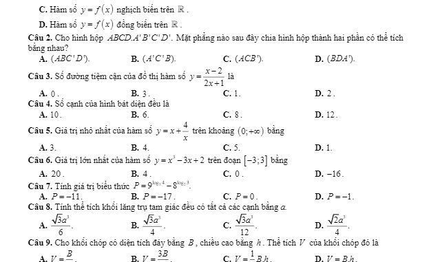 Bạn đang xem Đề thi học kỳ 1 Toán 12 năm học 2019 – 2020 sở GD&ĐT Vĩnh Phúc. Cập nhật thêm đề thi thử, đề kiểm tra toán, học toán tại ToanHAY.Com