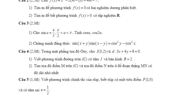 Trích dẫn đề thi học kỳ 2 Toán 10 năm 2018 – 2019 trường THPT Thị xã Quảng Trị: