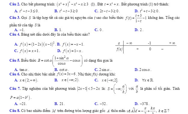 Đề thi học kỳ 2 Toán 10 năm 2019 – 2020 trường THPT Nguyễn Trãi – Đà Nẵng mã đề 143 gồm có 02 trang với 32 câu trắc nghiệm và 04 câu tự luận, phần trắc nghiệm chiếm 8,0 điểm, phần tự luận chiếm 2,0 điểm, thời gian làm bài thi là 90 phút (không tính khoảng thời gian phát đề).Trích dẫn đề thi học kỳ 2 Toán 10 năm 2019 – 2020 trường THPT Nguyễn Trãi – Đà Nẵng: