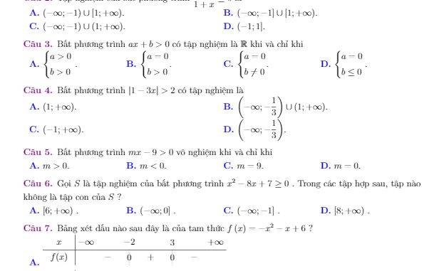 + Gọi S là tập nghiệm của bất phương trình x2 − 8x + 7 ≥ 0 . Trong các tập hợp sau, tập nào không là tập con của S?