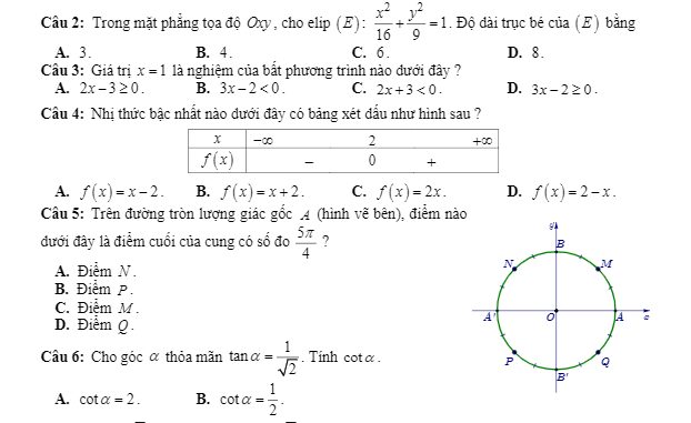 Chiều thứ Hai ngày 29 tháng 06 năm 2020, sở Giáo dục và Đào tạo tỉnh Quảng Nam tổ chức kỳ thi kiểm tra khảo sát chất lượng môn Toán đối với học sinh khối 10 trong giai đoạn học kỳ 2 (HK2) năm học 2019 – 2020.Đề thi học kỳ 2 Toán 10 năm học 2019 – 2020 sở GD&ĐT Quảng Nam mã đề 101 gồm có 02 trang với 15 câu trắc nghiệm và 03 câu tự luận, thời gian làm bài 60 phút, đề thi có đáp án mã đề 101, 102, 103, 104, 105, 106.Trích dẫn đề thi học kỳ 2 Toán 10 năm học 2019 – 2020 sở GD&ĐT Quảng Nam: