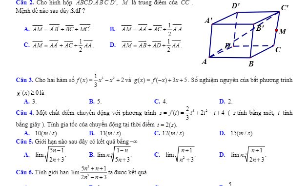 Đề thi học kỳ 2 Toán 11 năm 2019 – 2020 trường THPT Nguyễn Trãi – Đà Nẵng mã đề 111 gồm có 04 trang với 32 câu trắc nghiệm và 03 câu tự luận, phần trắc nghiệm chiếm 8,0 điểm, phần tự luận chiếm 2,0 điểm, thời gian làm bài thi là 90 phút (không tính khoảng thời gian phát đề), đề thi có đáp án.Trích dẫn đề thi học kỳ 2 Toán 11 năm 2019 – 2020 trường THPT Nguyễn Trãi – Đà Nẵng: