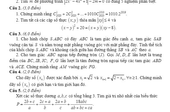Thứ Ba ngày 06 tháng 10 năm 2020, sở Giáo dục và Đào tạo tỉnh Quảng Trị tổ chức kỳ thi chọn học sinh giỏi văn hóa lớp 12 THPT môn Toán năm học 2020 – 2021.Đề thi học sinh giỏi Toán 12 năm 2020 – 2021 sở GD&ĐT Quảng Trị gồm 01 trang với 05 bài toán dạng tự luận, thời gian học sinh làm bài thi là 180 phút.Trích dẫn đề thi học sinh giỏi Toán 12 năm 2020 – 2021 sở GD&ĐT Quảng Trị: