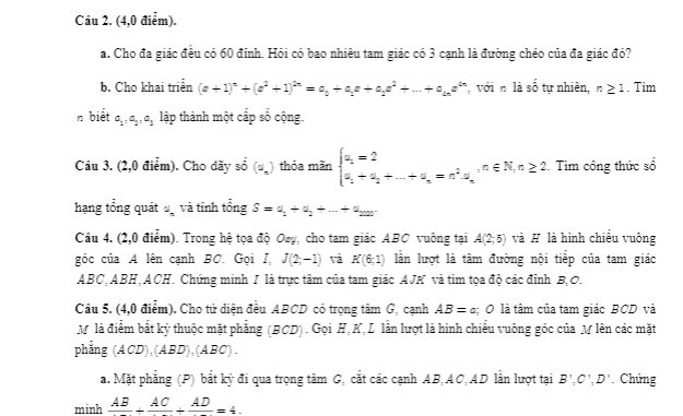 + Cho đa giác đều có 60 đỉnh. Hỏi có bao nhiêu tam giác có 3 cạnh là đường chéo của đa giác đó?