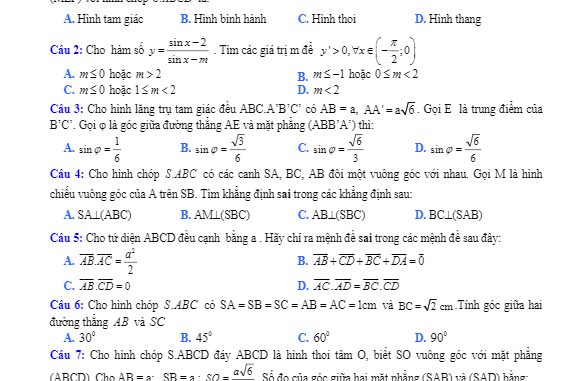 A. Hình tam giác. B. Hình bình hành. C. Hình thoi. D. Hình thang.