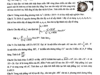 Đề thi HSG Toán 11 năm học 2018 – 2019 trường THPT Nguyễn Đức Cảnh – Thái Bình mã đề 001 gồm 3 trang, đề […]