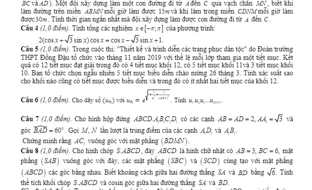 Ngày … tháng 11 năm 2019, trường THPT Đồng Đậu, tỉnh Vĩnh Phúc tổ chức kỳ thi chọn học sinh giỏi Toán 12 cấp trường lần thứ 2 năm học 2019 – 2020, nhằm tiếp tục tuyển chọn các em học sinh giỏi Toán 12 vào đội tuyển của trường, đồng thời giúp đội tuyển nhà trường rèn luyện, hướng đến kỳ thi học sinh giỏi Toán THPT cấp tỉnh.Đề thi HSG Toán 12 lần 2 năm học 2019 – 2020 trường THPT Đồng Đậu – Vĩnh Phúc được biên soạn theo hình thức tự luận, đề gồm 01 trang với 10 bài toán, thời gian làm bài 180 phút, nội dung đề bao quát chương trình Toán 10, Toán 11 và Toán 12, đề thi có lời giải chi tiết.Trích dẫn đề thi HSG Toán 12 lần 2 năm 2019 – 2020 trường THPT Đồng Đậu – Vĩnh Phúc: