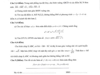Đề thi học sinh giỏi Toán 12 năm 2020 – 2021 sở GD&ĐT Quảng Trị