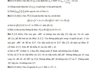 Đề chọn đội tuyển thi HSG Toán Quốc gia năm 2020 – 2021 sở GD&ĐT Hưng Yên gồm 02 bài thi; bài thi thứ nhất […]