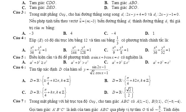 + Trong mặt phẳng tọa độ Oxy, cho hai điểm A(1;6), B(-1;-4). Gọi C, D lần lượt là ảnh của A và B qua phép tịnh tiến theo vectơ v = (1;5). Tìm khẳng định đúng: