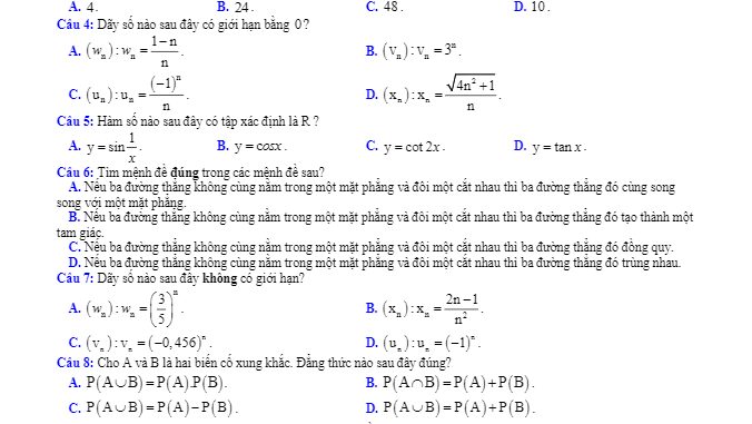 Ngày … tháng 05 năm 2020, trường THPT Nguyễn Viết Xuân, tỉnh Vĩnh Phúc tổ chức kỳ thi khảo sát chất lượng môn Toán lớp 11 năm học 2019 – 2020 lần thi thứ ba, kỳ thi được diễn ra trong giai đoạn giữa học kỳ 2 (HK2).Đề thi KSCL Toán 11 lần 3 năm 2019 – 2020 trường Nguyễn Viết Xuân – Vĩnh Phúc mã đề 075 gồm có 08 trang với 50 câu trắc nghiệm, thời gian làm bài 90 phút, đề thi có đáp án.Trích dẫn đề thi KSCL Toán 11 lần 3 năm 2019 – 2020 trường Nguyễn Viết Xuân – Vĩnh Phúc: