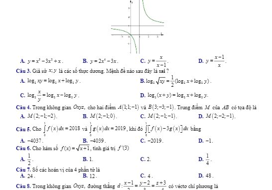 Đề thi KSCL Toán 12 lần 4 năm 2018 – 2019 trường Nông Cống 2 – Thanh Hóa