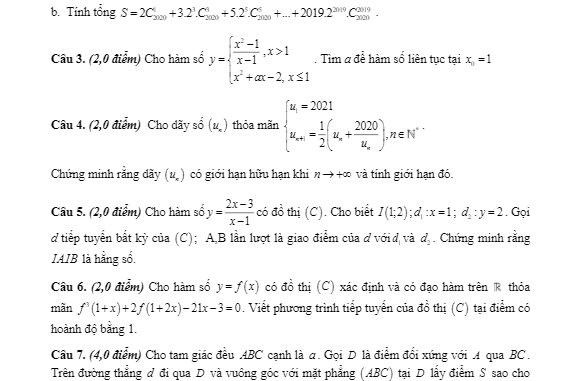 ToanHAY.com giới thiệu đến quý thầy, cô giáo và các em học sinh đề thi Olympic Toán 11 năm học 2019 – 2020 cụm Sóc Sơn – Mê Linh – Hà Nội; đề thi gồm có 01 trang với 08 bài toán dạng tự luận, thời gian làm bài thi 150 phút, đề thi có lời giải chi tiết.Trích dẫn đề thi Olympic Toán 11 năm học 2019 – 2020 cụm Sóc Sơn – Mê Linh – Hà Nội: