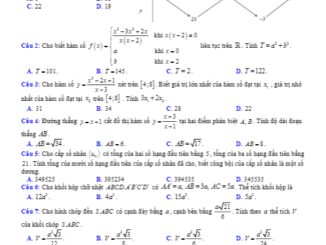Ngày …/10/2019, trường THPT Nguyễn Đức Cảnh, tỉnh Thái Bình tổ chức kỳ thi khảo sát chất lượng lần 1 môn Toán 12, nhằm kiểm […]