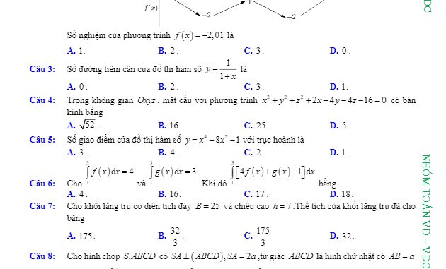 Bạn đang xem Đề thi thử tốt nghiệp THPT 2020 môn Toán lần 2 sở GD&ĐT Bắc Giang. Cập nhật thêm đề thi thử, đề kiểm tra toán, học toán tại ToanHAY.Com