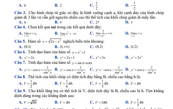+ Mệnh đề nào sau đây sai: