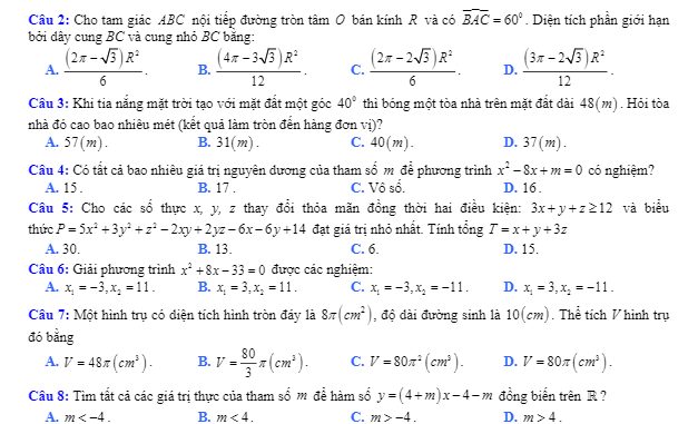 Trích dẫn đề thi xếp lớp Toán 10 năm 2019 – 2020 trường Nguyễn Viết Xuân – Vĩnh Phúc: