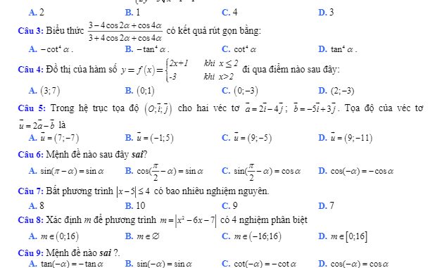 Trích dẫn đề thi xếp lớp Toán 11 năm 2019 – 2020 trường Nguyễn Viết Xuân – Vĩnh Phúc: