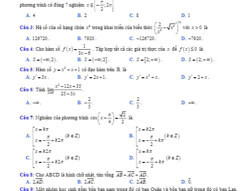 Trích dẫn đề thi xếp lớp Toán 12 năm 2019 – 2020 trường Nguyễn Viết Xuân – Vĩnh Phúc: