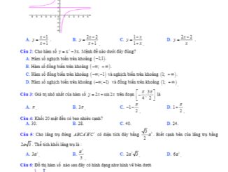 Đề khảo sát lần 1 Toán 12 năm học 2019 – 2020 trường THPT Lý Thánh Tông – Hà Nội mã đề 001 gồm có […]