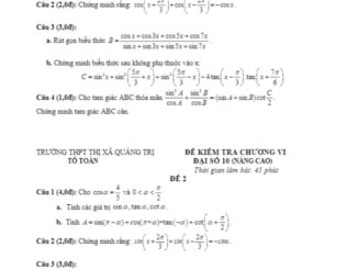Đề kiểm tra Đại số 10 chương 6 năm 2018 – 2019 trường THPT Thị xã Quảng Trị gồm 2 mã đề, đề được biên […]