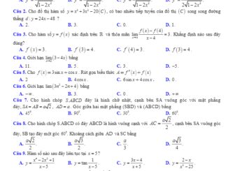 Đề thi HK2 Toán 11 năm 2019 – 2020 trường THPT Đông Hưng Hà – Thái Bình gồm 08 mã đề: 111, 112, 113, 114, […]