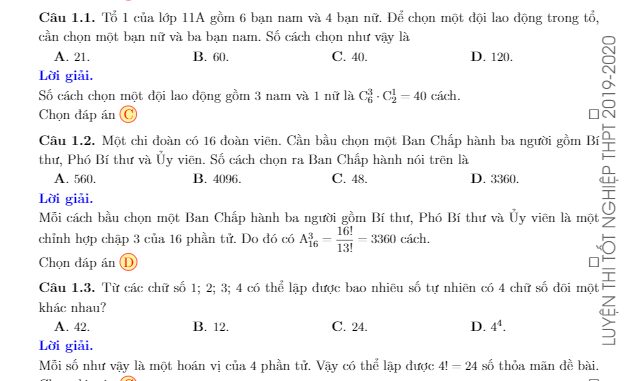 + Dạng toán 1. Hoán vị – Chỉnh hợp – Tổ hợp.