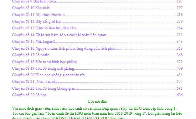 Tài liệu gồm 623 trang được tổng hợp bởi thầy Vũ Ngọc Thành, phân dạng và hướng dẫn giải chi tiết các bài toán trong các đề thi học sinh giỏi môn Toán các tỉnh thành trong năm học 2018 – 2019, giúp giáo viên và học sinh có cái nhìn tổng quan về kỳ thi HSG Toán cấp tỉnh.Khái quát nội dung tài liệu toàn cảnh đề thi HSG môn Toán các tỉnh thành năm học 2018 – 2019: