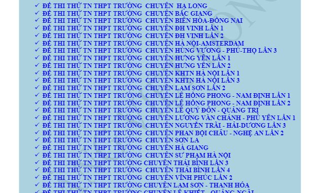 + Đề thi thử TN THPT trường THPT chuyên Lê Quý Đôn – Quảng Trị.